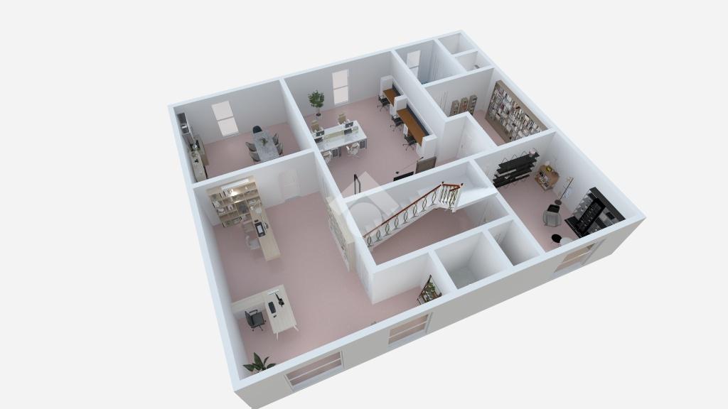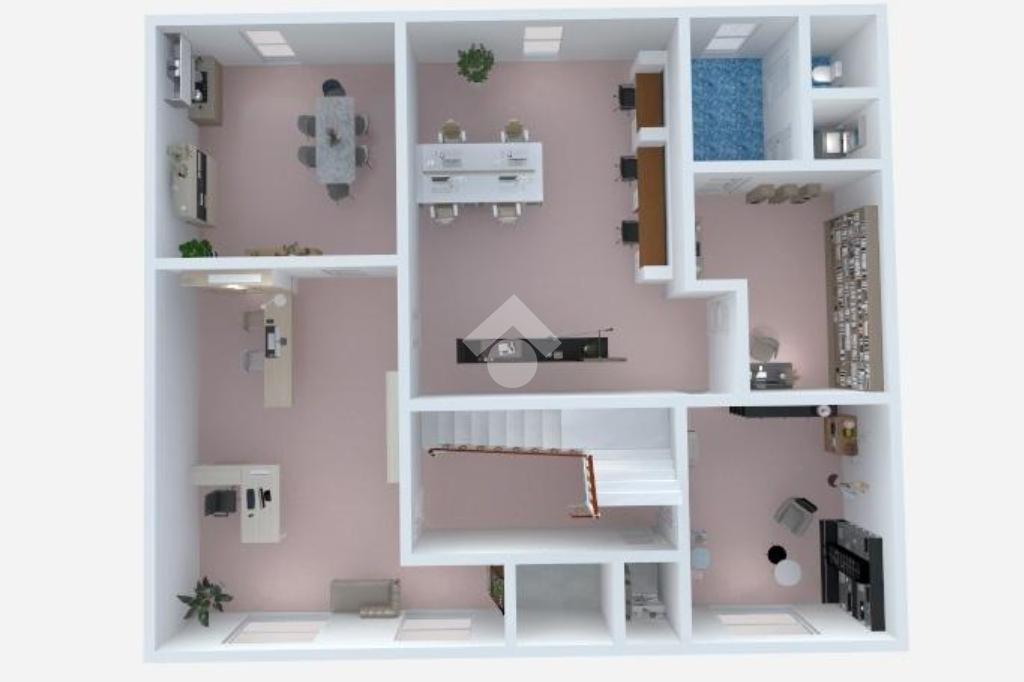 - Il primo piano è ad uso ufficio suddiviso in quattro ampie stanze luminose, oltre a spogliatoio e bagni finestrati
