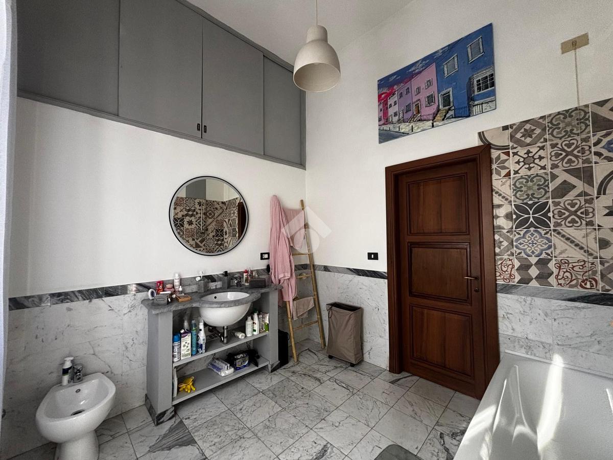 Al piano superiore vi è un ripostiglio, un ampio bagno finestrato con vasca/doccia, la luminosa camera matrimoniale con cabina armadio e una grande stanza multiuso con dettagli in stile Liberty.